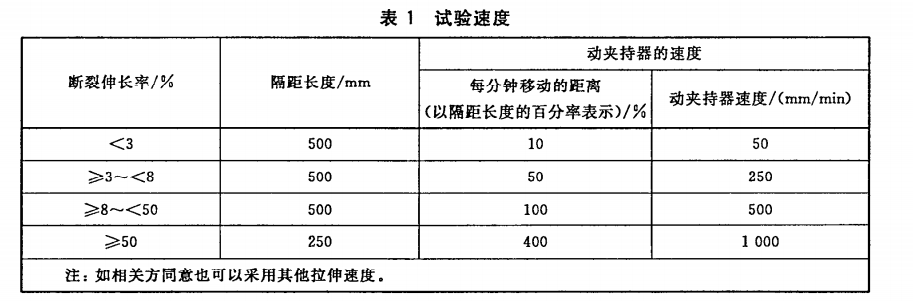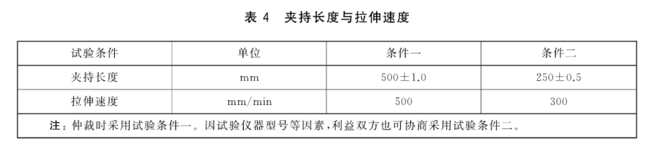 當試樣的平均斷裂伸長率小於50%時為(500土1.0)mm當試樣的平均斷裂伸長率大於等於50%時為(250士1.0)mm。