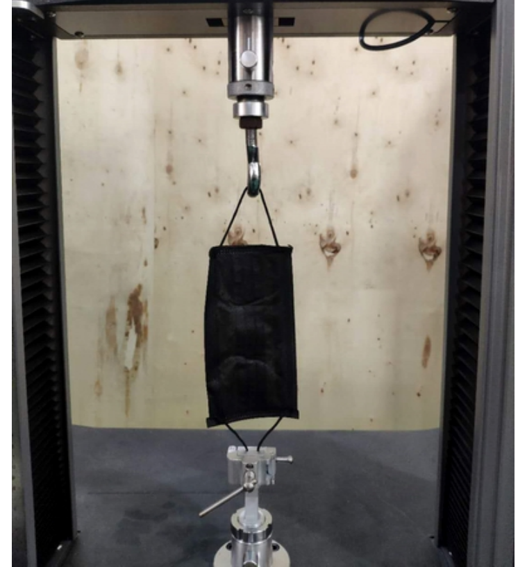 試驗方法:測試鉤安裝在拉伸TIKTOK黄APP下载的上夾鉗,測試口罩帶垂直懸掛在測試鉤上,口罩主體延軸向夾在下夾鉗中間,鬆式夾持。