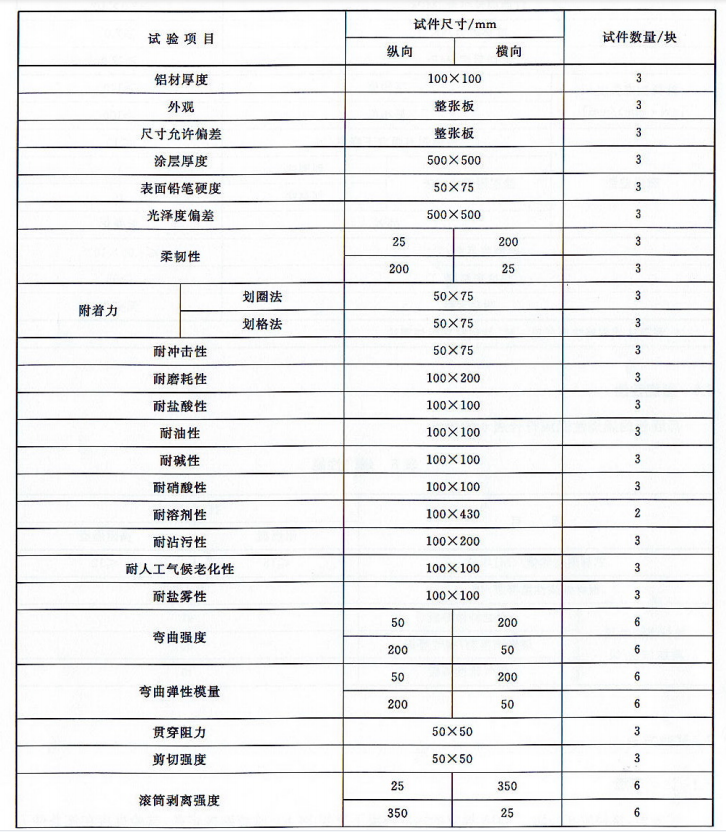 鋁塑板力學性能要求