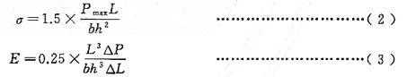 分別按式(2)、式(3)計算彎曲強度和彎曲彈性模量: