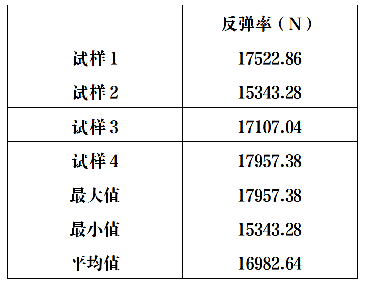 試驗速度由1mm/min加載到88.96kN,力值再卸載到0N,重複3次;用速度1mm/min加載到88.96kN,到88.96kN時這個力值位移為起點,卸載力值,位移(變形)0.76mm時,試驗結束,記錄該點的力值。(該力值命名:反彈率)