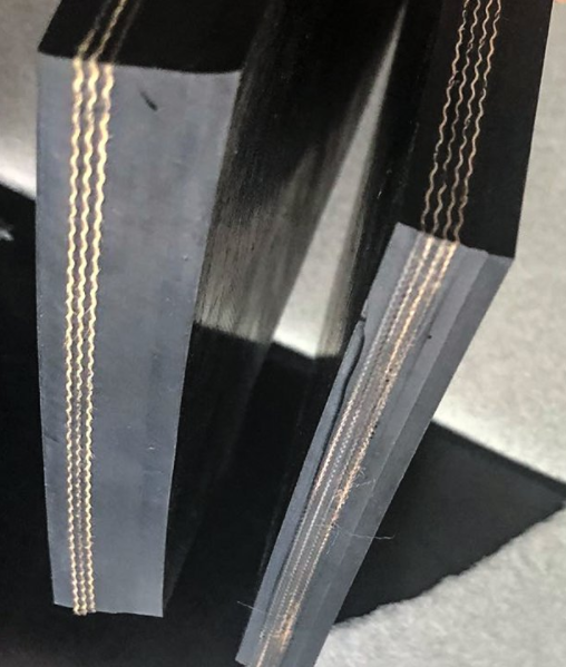 輸送帶試樣應在離開帶邊至少50mm且無接頭的部位切取,縱向試樣的縱向中心線應與帶的縱向中心線平行,橫向試樣的橫向中心線應與帶縱向中心線垂直。試樣的縱向邊到從輸送帶切取的樣品的任何一條邊的距離均不得小於12mm。