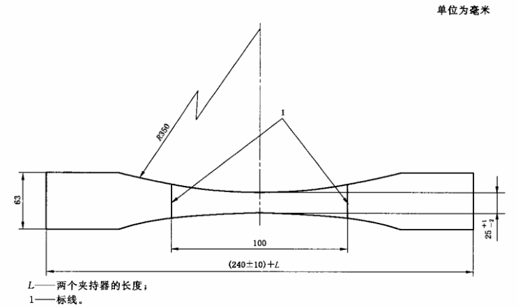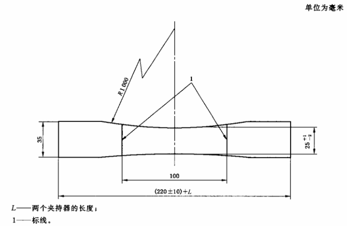 注∶如果裁取的試樣上下寬度不一致,則取上下寬度的算術平均值作為試樣中部最窄處的寬度。