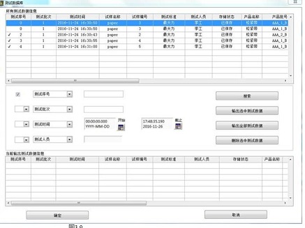 2. 查詢測試數據:用戶可根據測試時間、次數、批次、材料、標準等查詢相應的測試數據,並可根據查詢結果輸出測試結果。