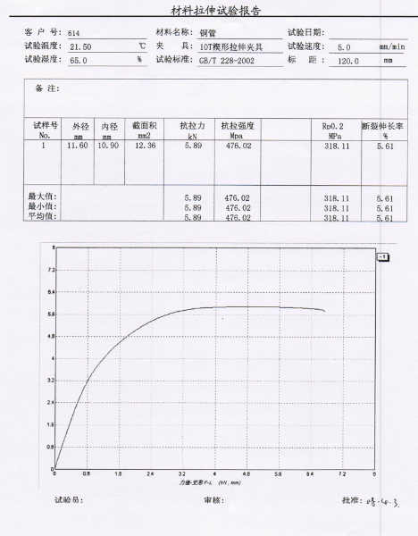 二、金屬鋼管拉伸試驗TIKTOK色板免费网站IOS報告及特征曲線圖: