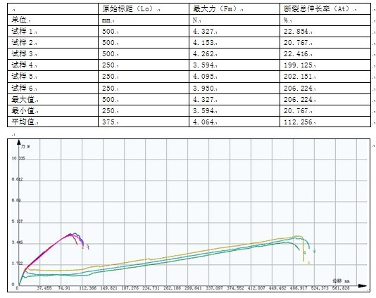二、滌綸絲拉力TIKTOK黄APP下载試驗數據及曲線: