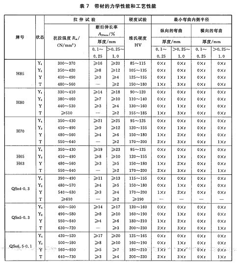 3) 縱向室溫拉伸試驗、硬度試驗、90度彎曲試驗條件及性能要求,應達到下表規定: