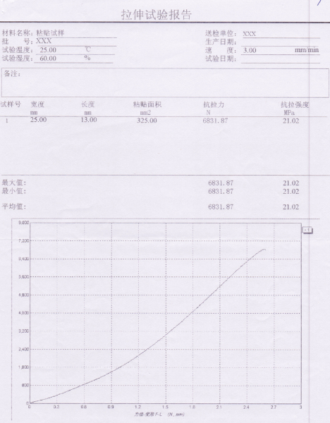 二、粘貼試樣拉伸試驗報告及特征曲線: