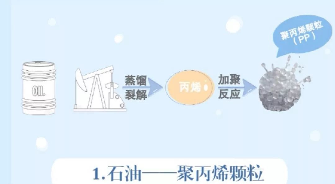 石油經過蒸餾裂解得到丙烯,丙烯加聚反應形成的聚合物就是聚丙烯(PP)顆粒。