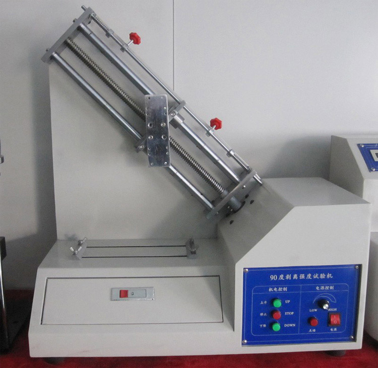 90度膠帶剝離力TIKTOK黄APP下载采用精密電機及無隙螺杆作往複運動,配以數顯拉力表及專用夾具,專門試驗PC板上銅箔電路之附著力或錫箔、鋁箔、膠布……等黏著於物體表麵之牢固度。試驗時以垂直之角度剝離試料,從而測得實際之強度,設有微動限位開關,能調整剝離行程