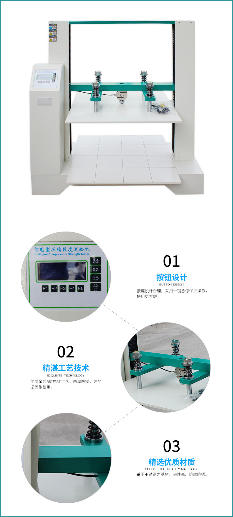 3.可輸入相關數據並自動換算抗壓強度,自帶包裝堆碼測試功能,可直接設定力量、時間,測試完成後自動停機;