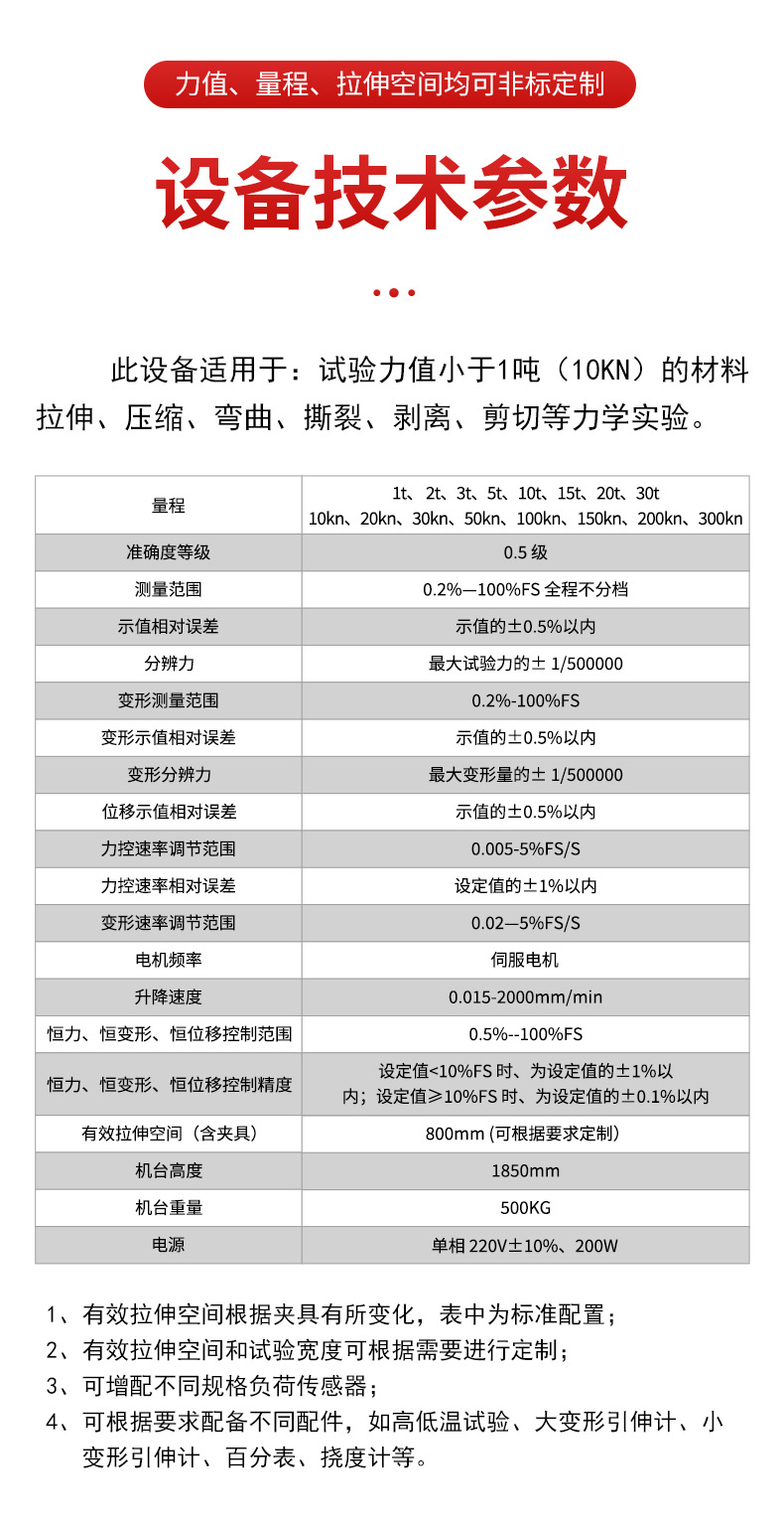 位移速度調節範圍 : 0.01-500mm/min(特殊測試速度亦可依客戶需求定製)