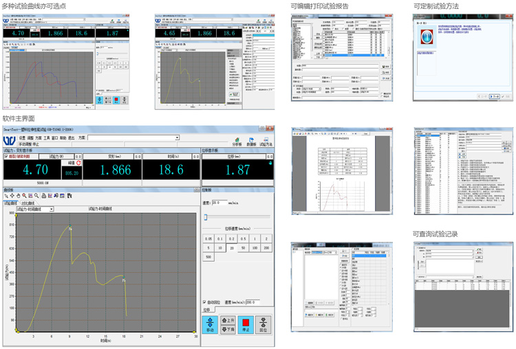 試驗曲線:試驗力(應力)-時間、試驗力(應力)-位移(變形)等,具有試驗力、位移(變形)、時間及試驗曲線動態顯示等功能。