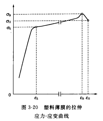 通常選用屈服強度作用包裝塑料薄膜的使用極限,如圖所示δS、δB分別代表屈服強度、拉伸強度。