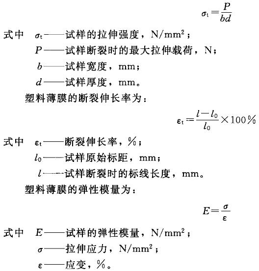 試樣拉伸長度的變化用斷裂伸長率表示。在應力-應變曲線的屈服點之前的直線段上,選取適當的應力和應變,便可求出包裝塑料薄膜的彈性模量。